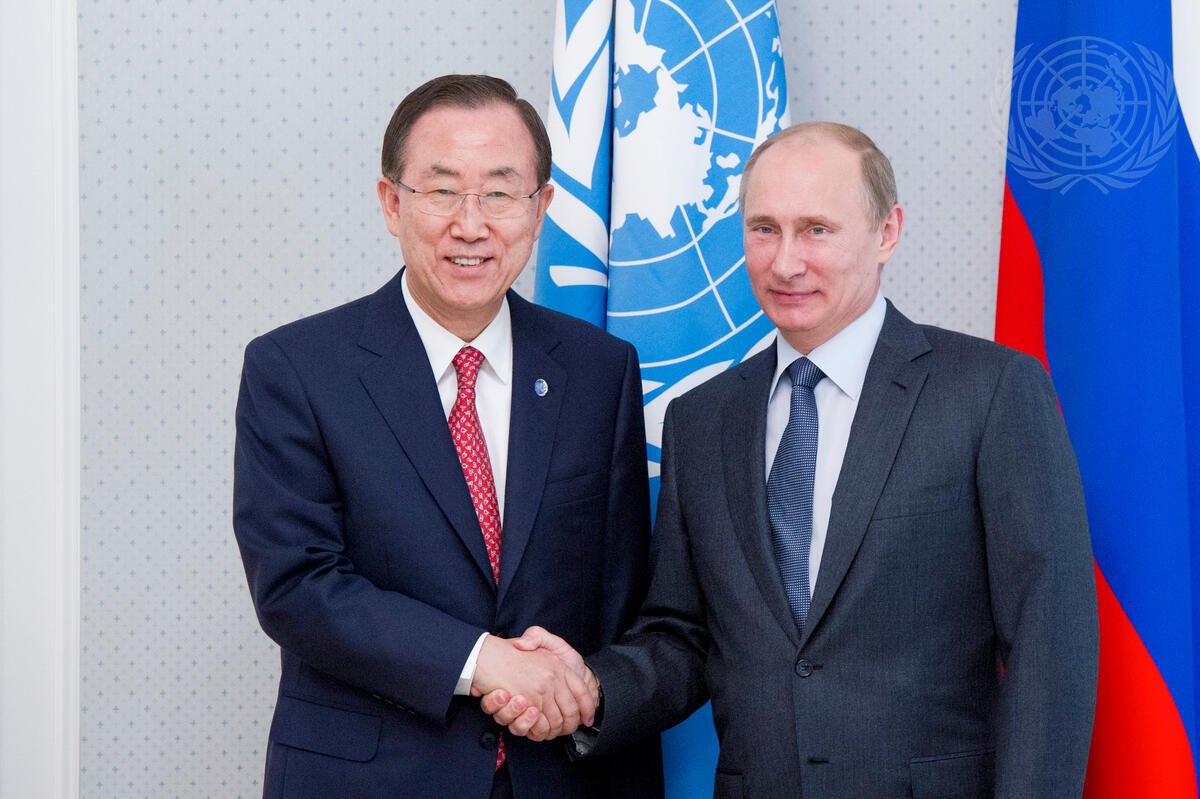 Secretary-General Ban Ki-moon (left) meets with Vladimir V. Putin, President of the Russian Federation.