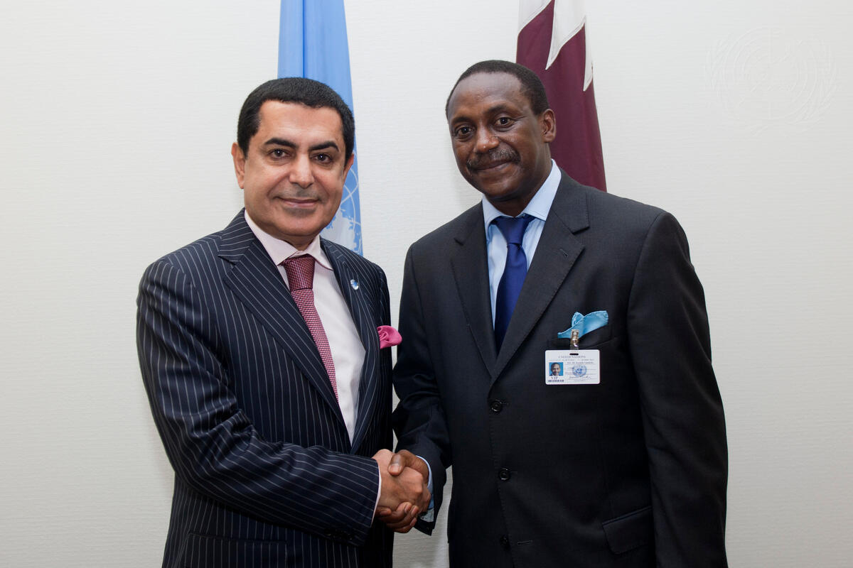 Nassir Abdulaziz Al-Nasser (left), President of the sixty-sixth session of the General Assembly, meets with Kandeh K. Yumkella, Director-General of the United Nations Industrial Development Organization (UNIDO).