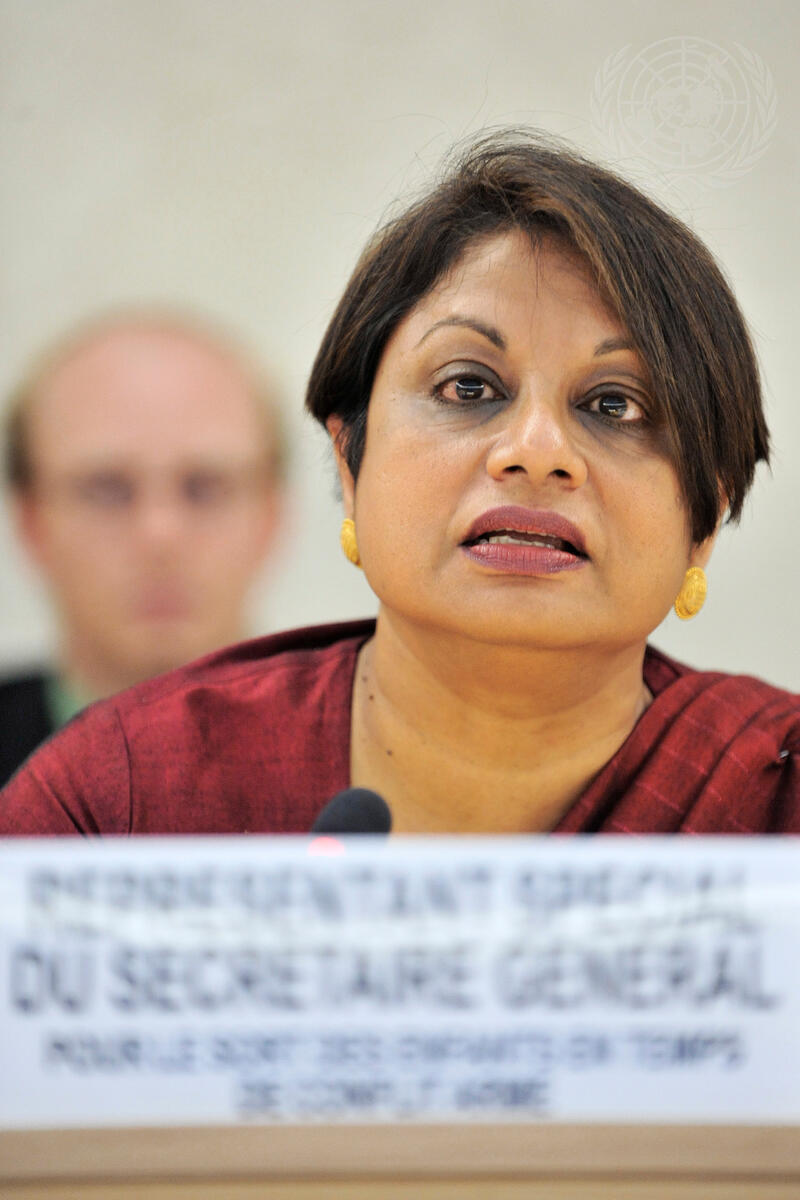 Radhika Coomaraswamy, Special Representative of the Secretary-General for Children and Armed Conflict, addresses the eighteenth session of the Human Rights Council, on the session’s opening day, in Geneva, Switzerland.