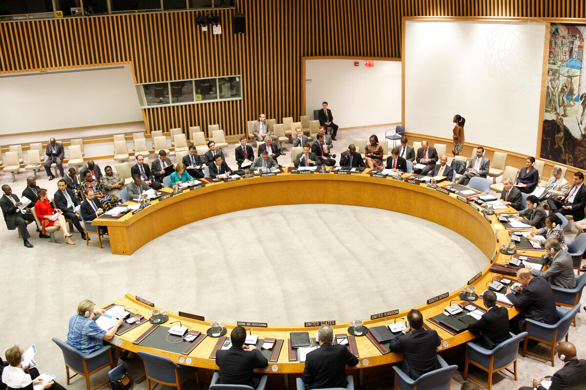 A wide view of the Security Council as Members meet to discuss the situation in Liberia and review the Secretary-General’s twenty-third progress report on the UN mission in that country (UNMIL).