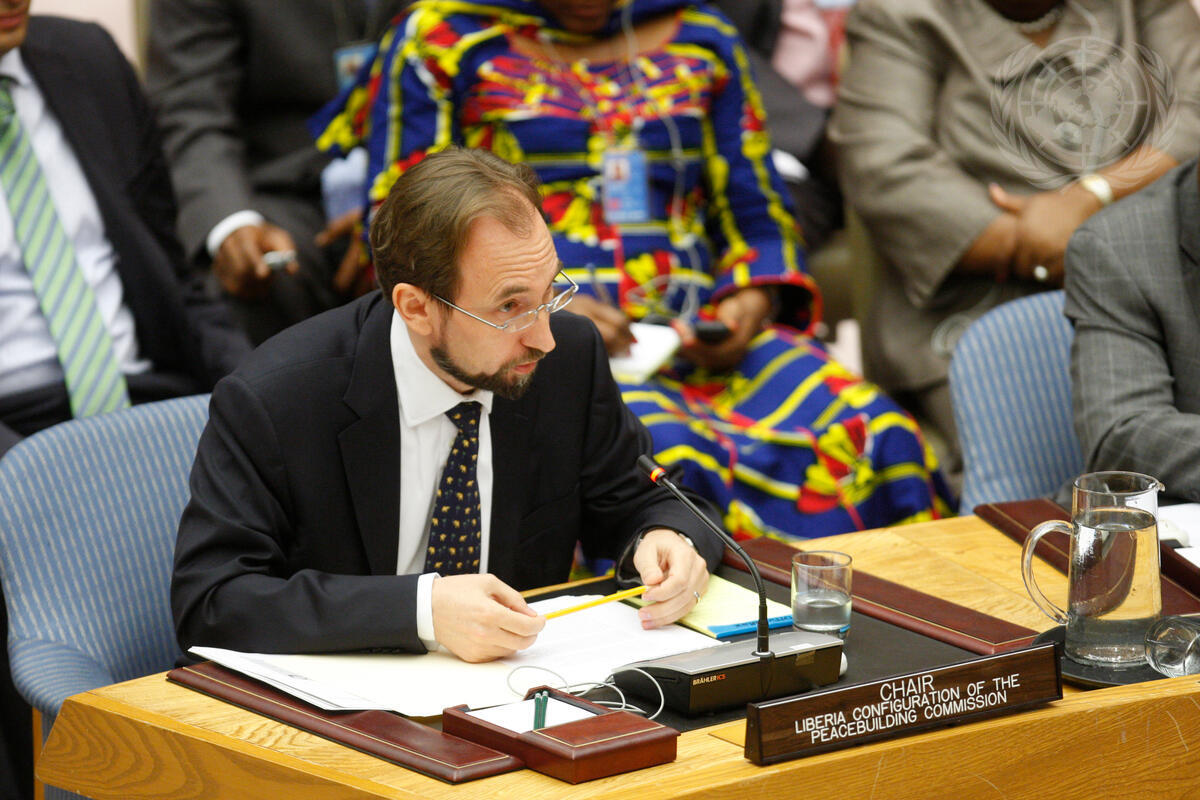 Zeid Ra’ad Zeid Al-Hussein, Permanent Representative of the Hashemite Kingdom of Jordan to the UN and Chair of the Liberia configuration of the Peacebuilding Commission, addresses the Security Council’s meeting on the situation in Liberia.