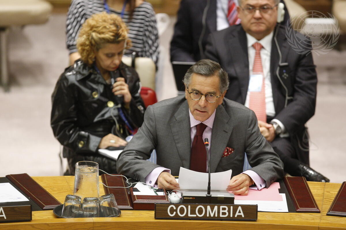 Néstor Osorio, Permanent Representative of Colombia to the UN and Chair of the Security Council Committee established pursuant to resolution 1737 (2006), also known as the Iran Sanctions Committee, briefs the Security Council.