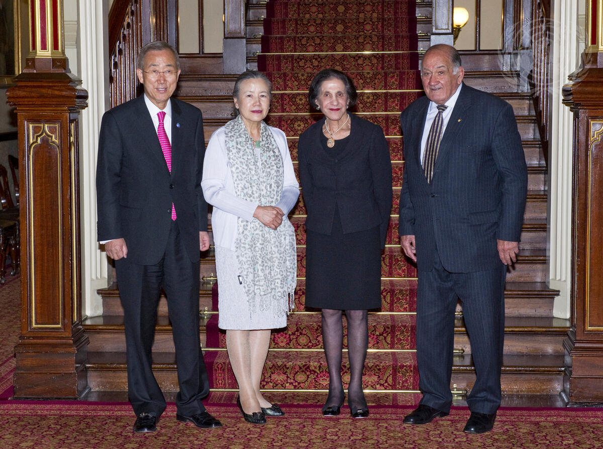 Secretary-General Ban Ki-moon (left) and his wife, Yoo Soon-taek (centre left), meet with Marie Bashir (centre right), Governor of Australia's state of New South Wales, and Nicholas Shehadie, former Lord Mayor of Sydney, in Sydney, Australia.