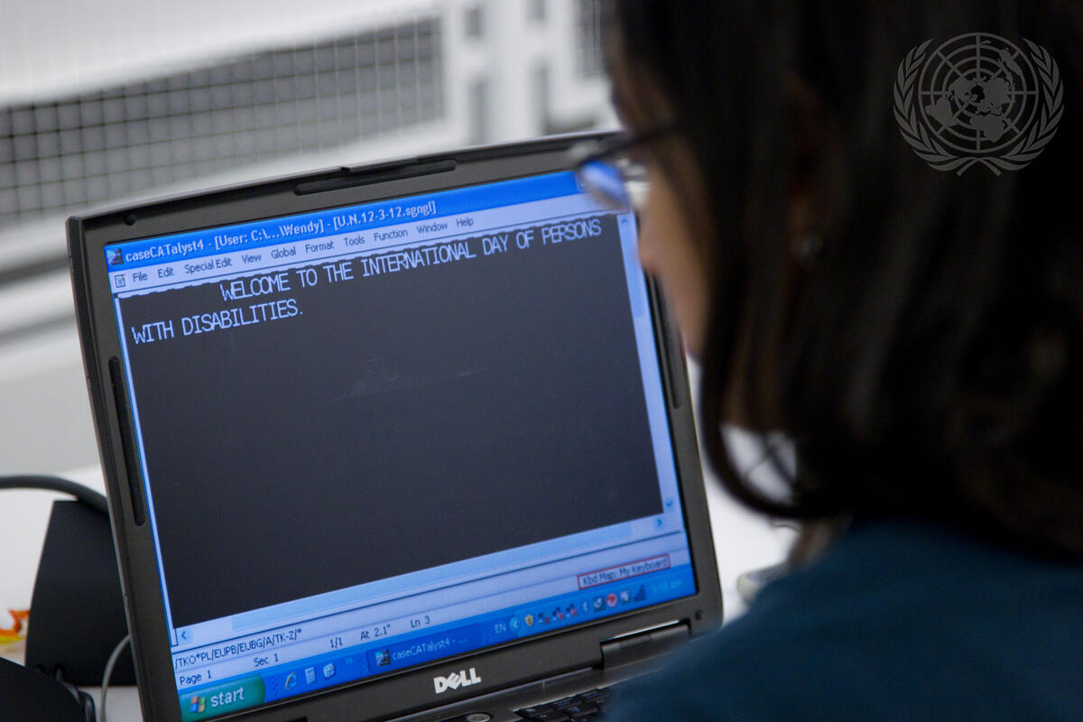 A close view of an attendee's accessible laptop at the launch of the preparatory process of the High-level meeting of the General Assembly on disability and development which will take place on 23 September, 2013.
