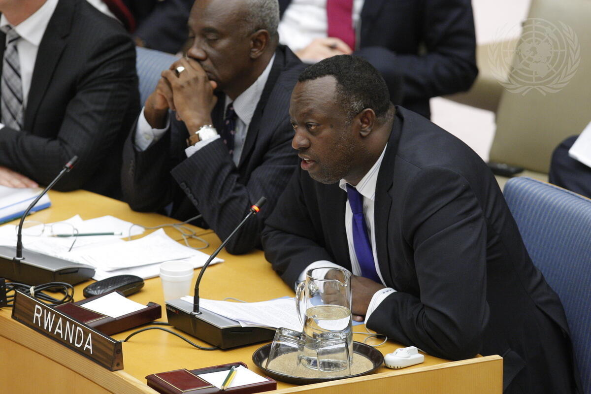 Eugène-Richard Gasana (right), Permanent Representative of Rwanda to the UN, addresses the Security Council’s meeting on the International Criminal Tribunal for the former Yugoslavia (ICTY) and International Criminal Tribunal for Rwanda (ICTR).