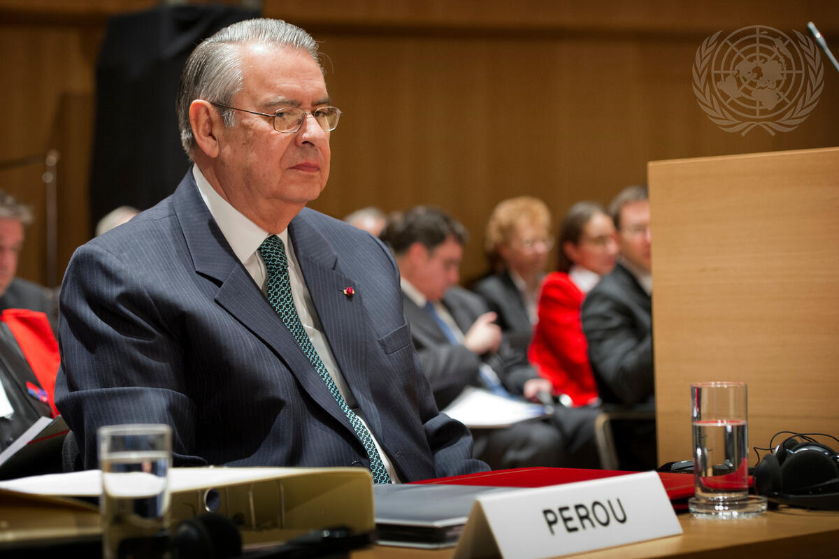 The Agent of Peru, Allan Wagner, at the opening of the International Court of Justice (ICJ)’s hearings in the Maritime Dispute (Peru v. Chile).