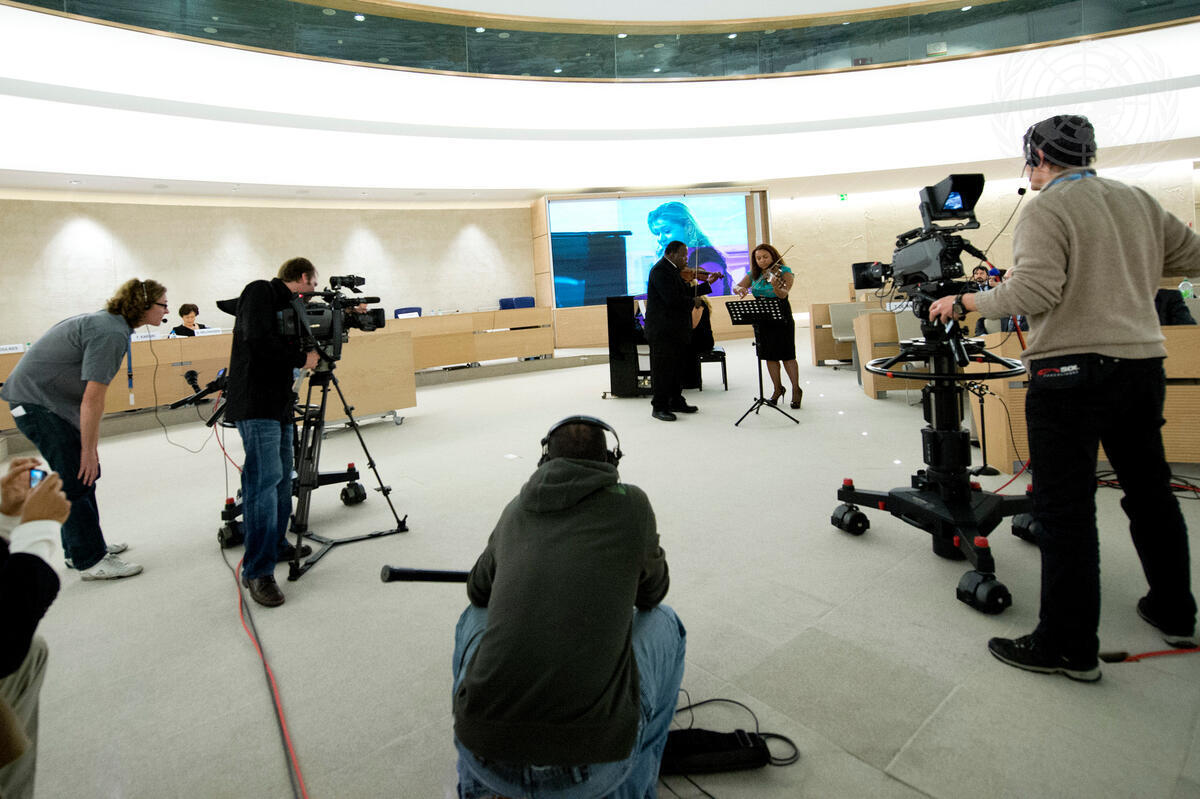 Musicians perform inside the UN’s Human Rights Council chamber for the celebration of Human Rights Day 2012, in Geneva, Switzerland.