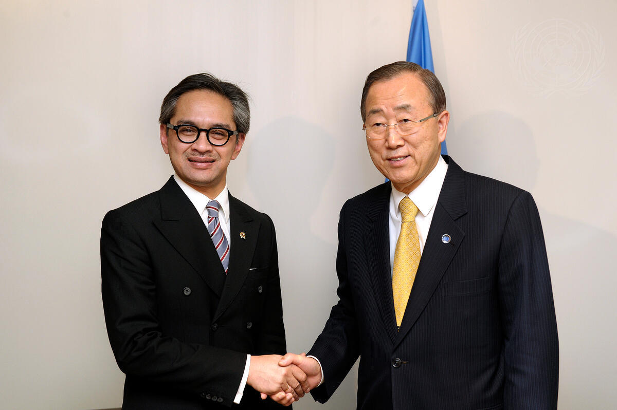 Secretary-General Ban Ki-moon (right) meets with Marty M. Natalegawa, Minister for Foreign Affairs of Indonesia.