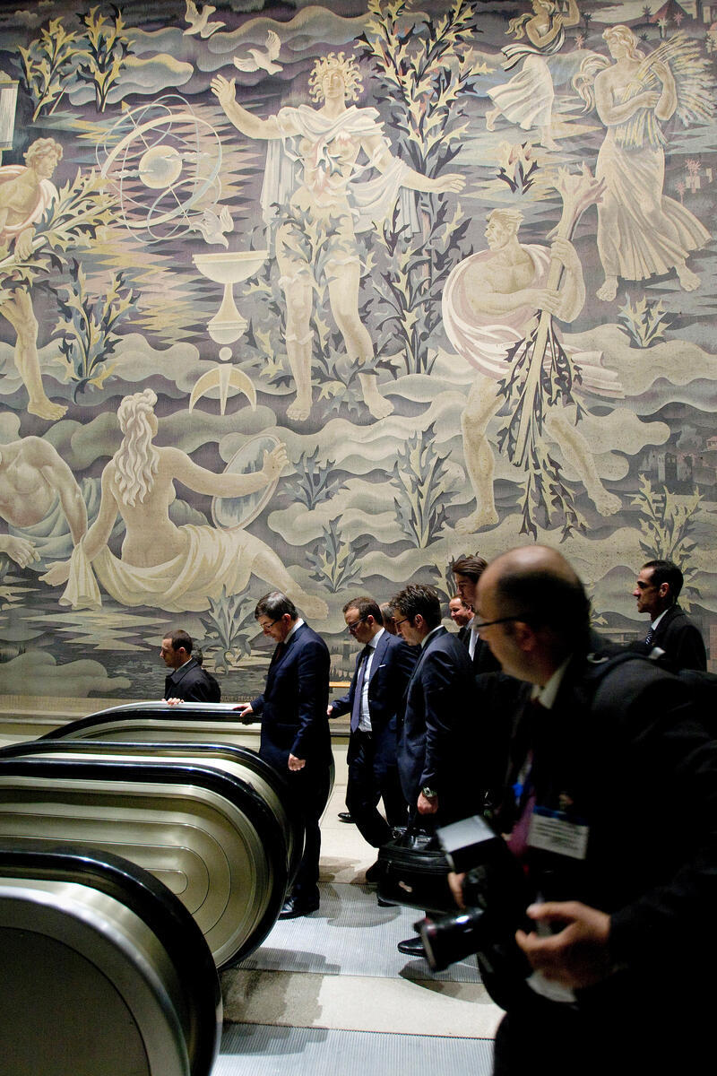 Ahmet Davutoglu (second from left), Minister for Foreign Affairs of Turkey, departs from the General Assembly Hall after addressing the Assembly on the decision.