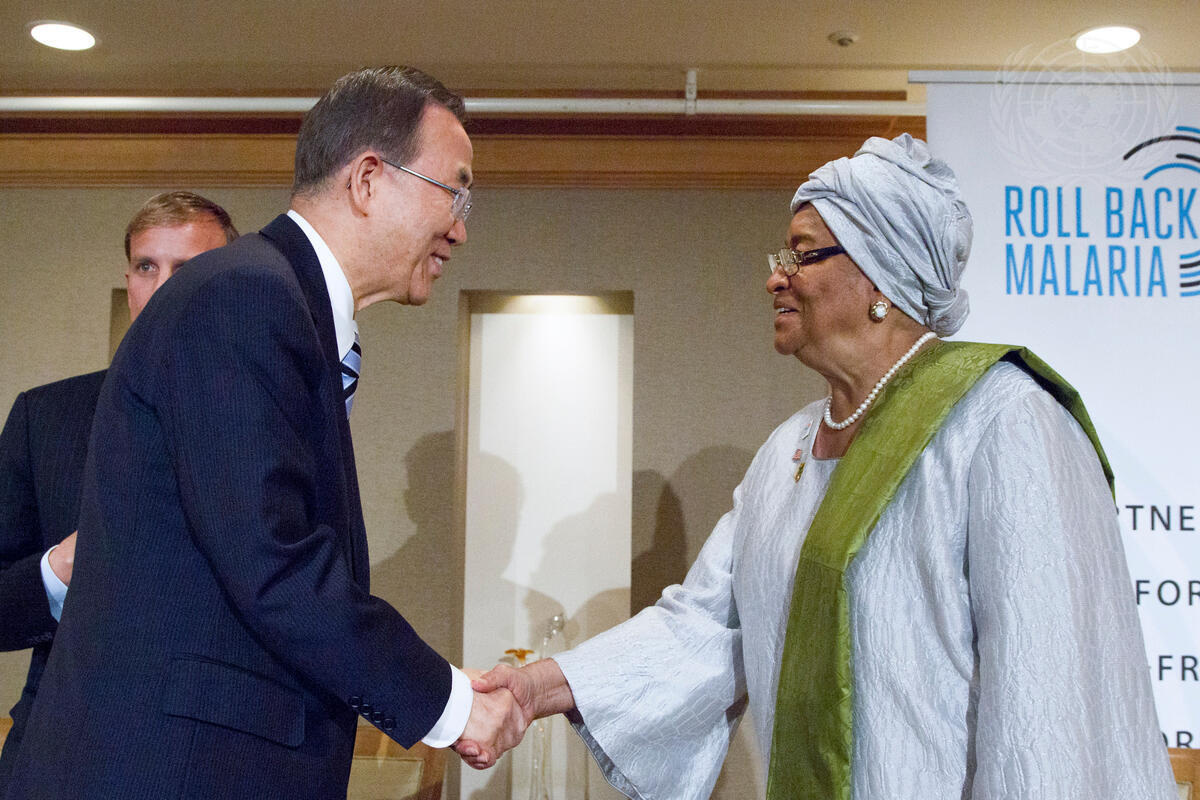 Mr. Ban (left) with Ellen Johnson Sirleaf, President of the Republic of Liberia and Co-Chair of the Secretary-General’s High-Level Panel on the Post-2015 Development Agenda, at the event.