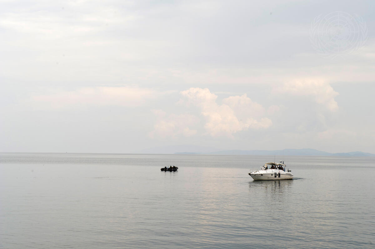 A UN boat on Lake Kivu in Goma, Democratic Republic of the Congo.