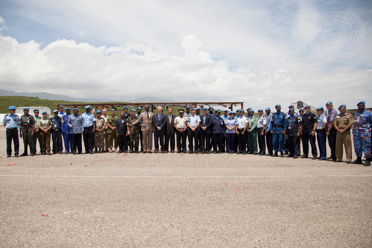 The UN Stabilization Mission in Haiti (MINUSTAH) held a special ceremony to commemorate the International Day of UN Peacekeepers (29 May). Blue berets and the Mission’s leadership pose for a group photo at the event.