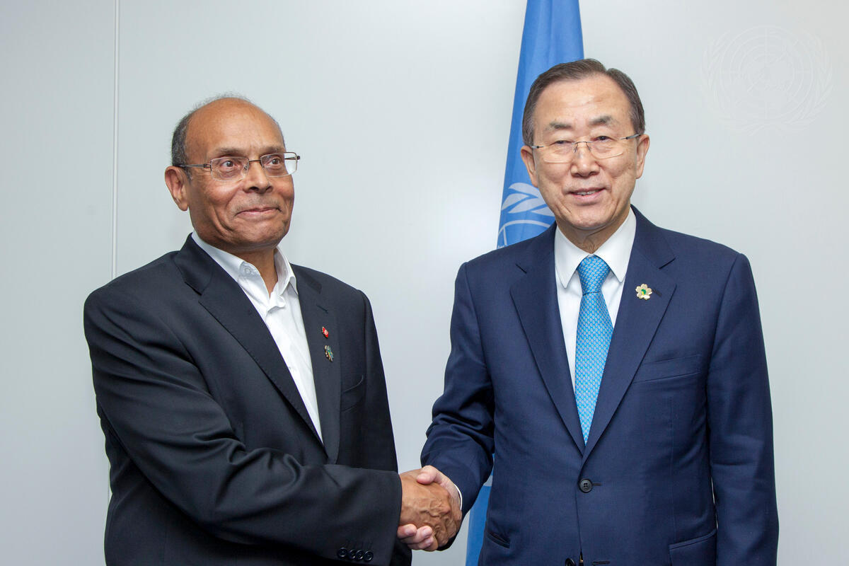 Secretary-General Ban Ki-moon (right) meets with Mohamed Moncef Marzouki, President of the Republic of Tunisia.
