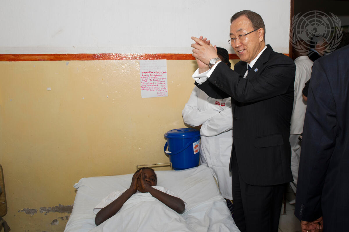 Secretary-General Ban Ki-moon shows support for fistula patients during his visit to the Heal Africa Hospital, on the first International Day to End Obstetric Fistula. Heal Africa provides health services and other support to women and children affected by the conflict in the Democratic Republic of the Congo (DRC).