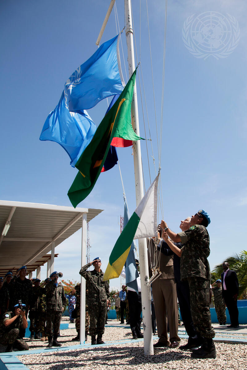 Flags are raised during the commemoration of the International Day of UN Peacekeepers (29 May) by the UN Stabilization Mission in Haiti (MINUSTAH).