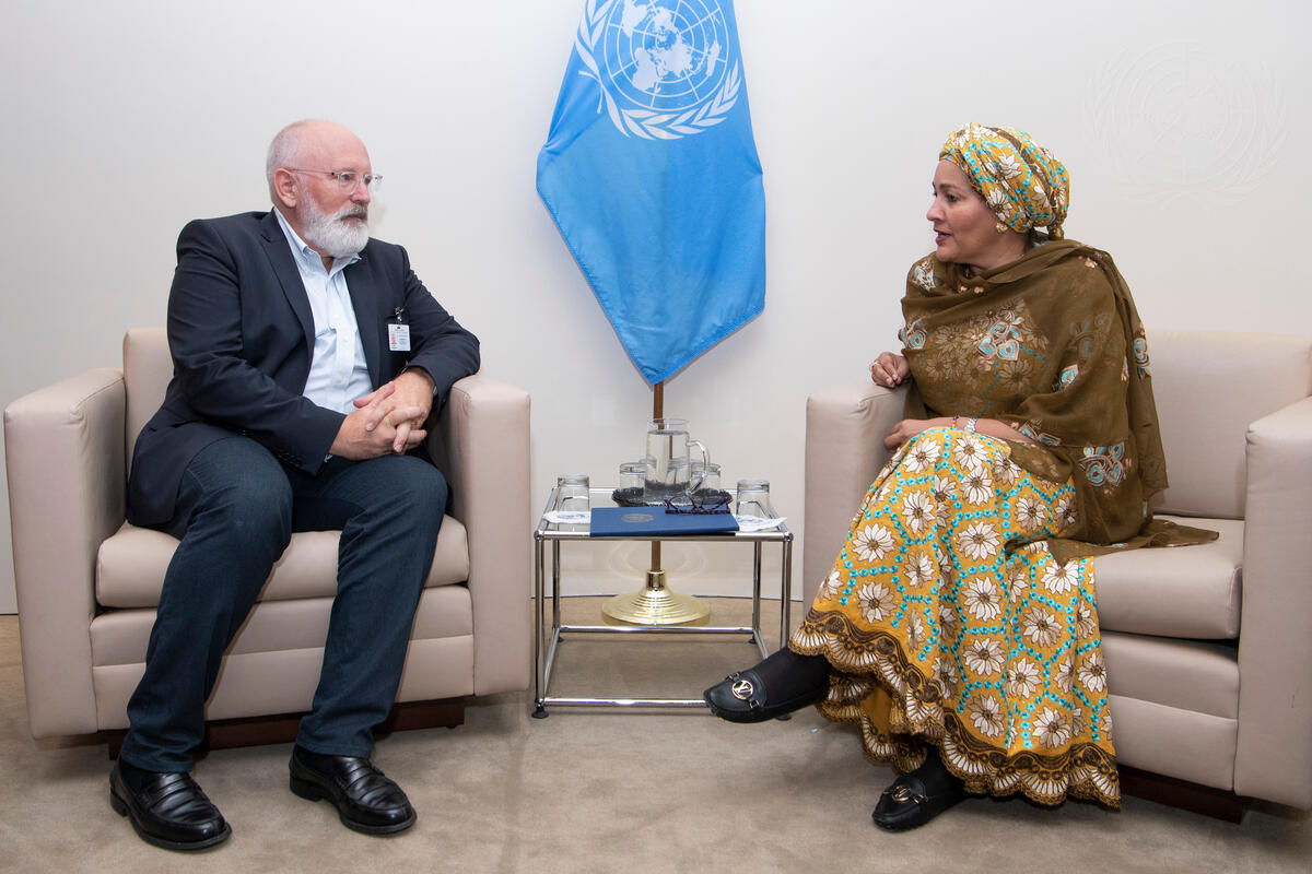 Deputy Secretary-General Amina Mohammed (right) meets with Frans Timmermans, First Vice-President of the European Commission.