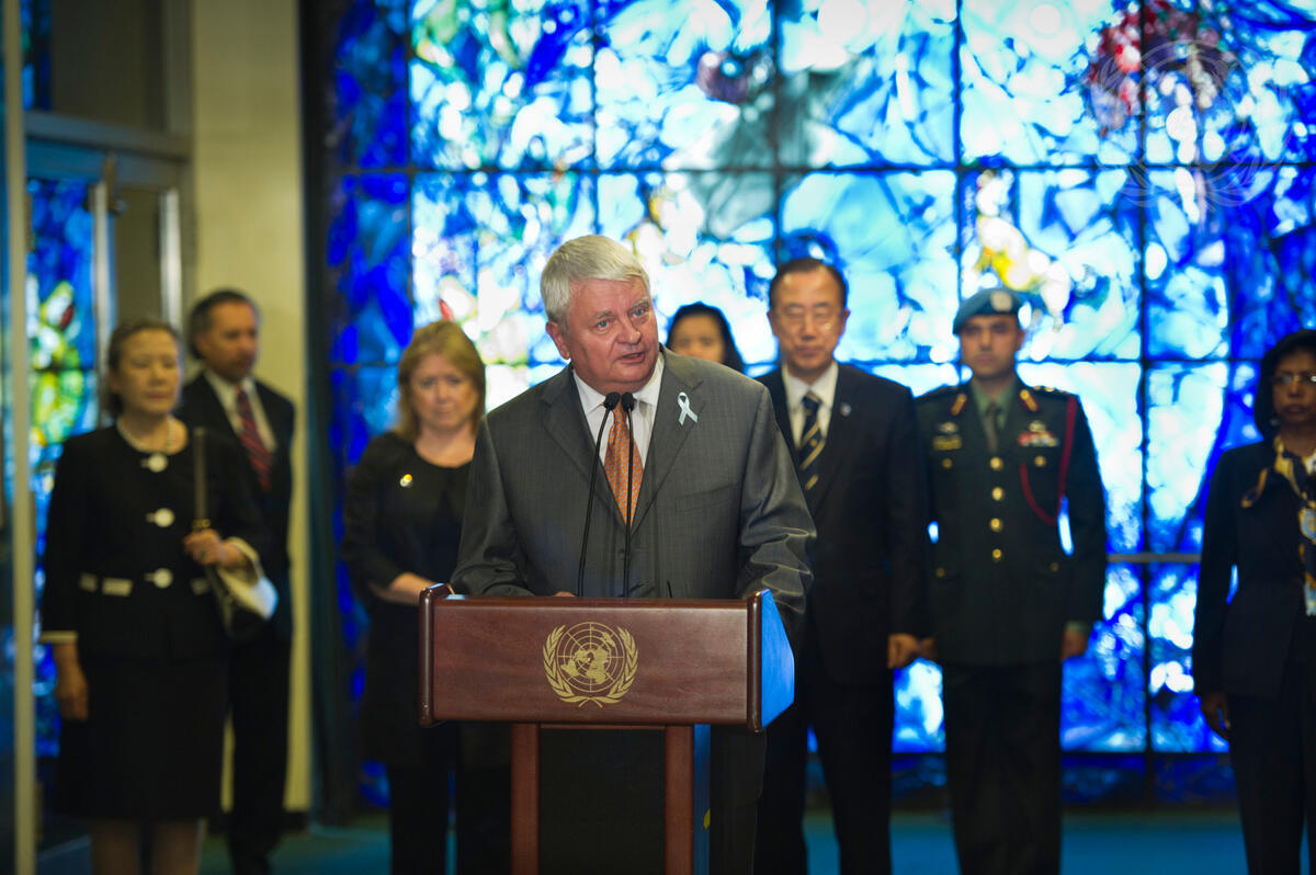 Secretary-General Ban Ki-moon laid a wreath in honour of all peacekeepers who lost their lives while serving under the UN flag, in a ceremony marking the International Day of United Nations Peacekeepers (29 May).