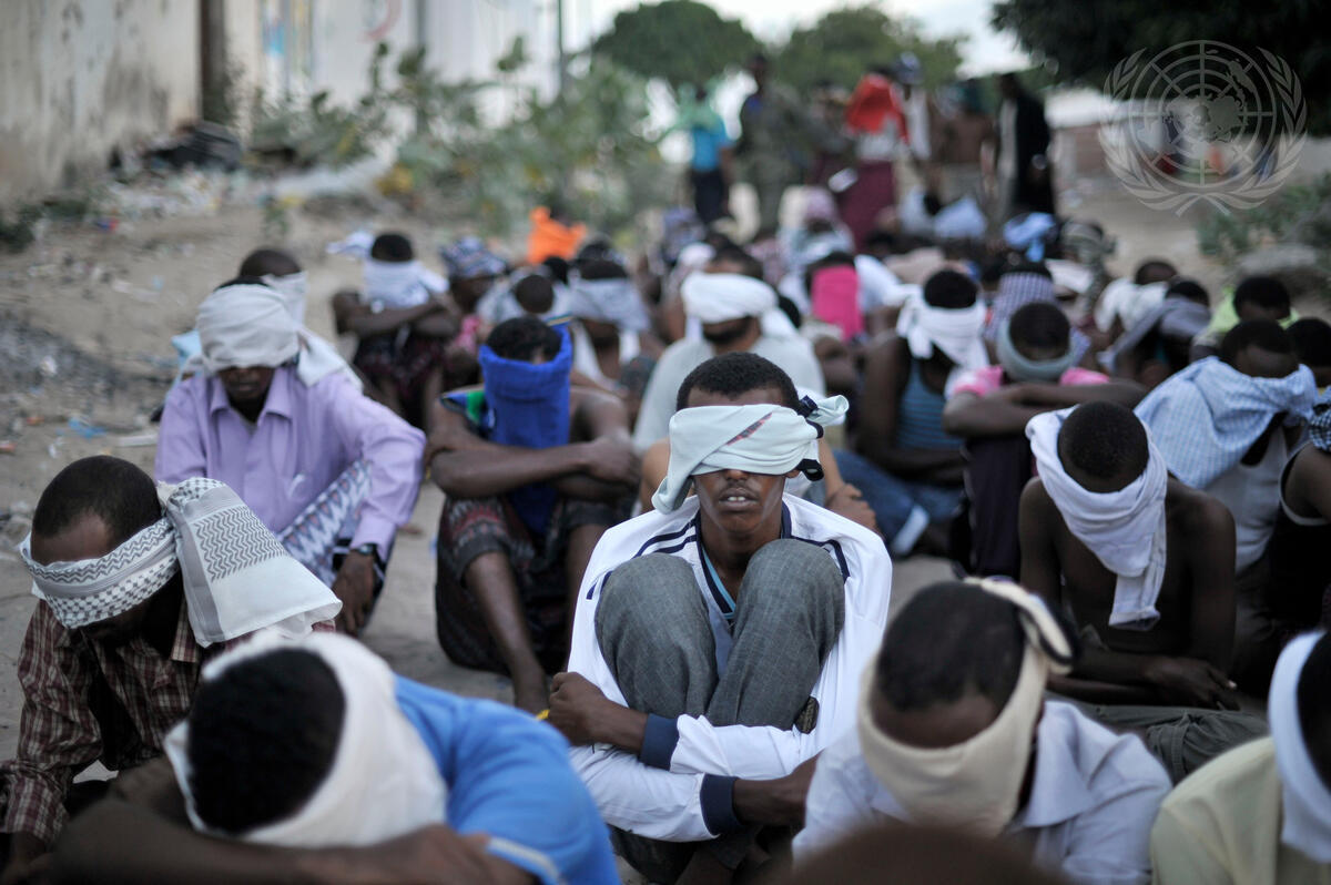 Young men in Mogadishu awaiting screening in an operation aimed at safeguarding security in the city. Somali National Security Forces, working with the African Union Mission in Somalia (AMISOM), cordoned off on 20 May an area of one square kilometer in the Wardhiigleey district of Mogadishu, to screen young men as part of an operation to weed out al-Shabaab insurgents from the city’s neighbourhoods.