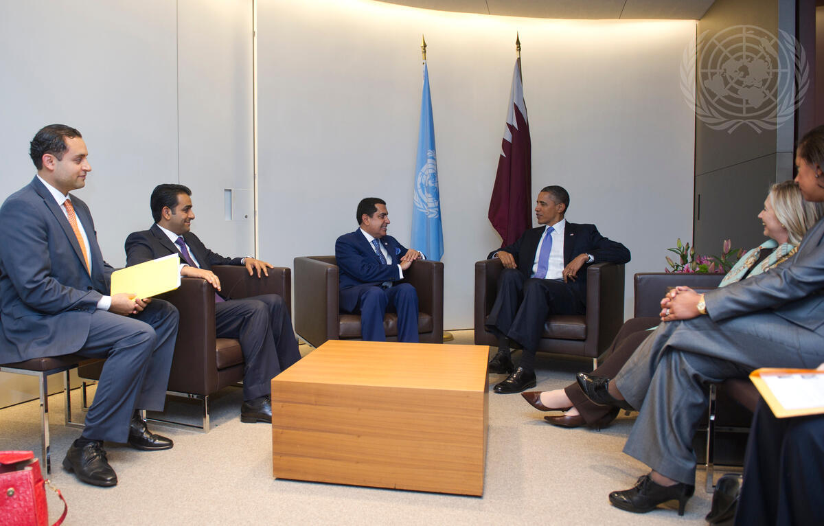 Nassir Abdulaziz Al-Nasser (centre left), President of the sixty-sixth session of the General Assembly, meets with Barack Obama (centre right), President of the United States of America.