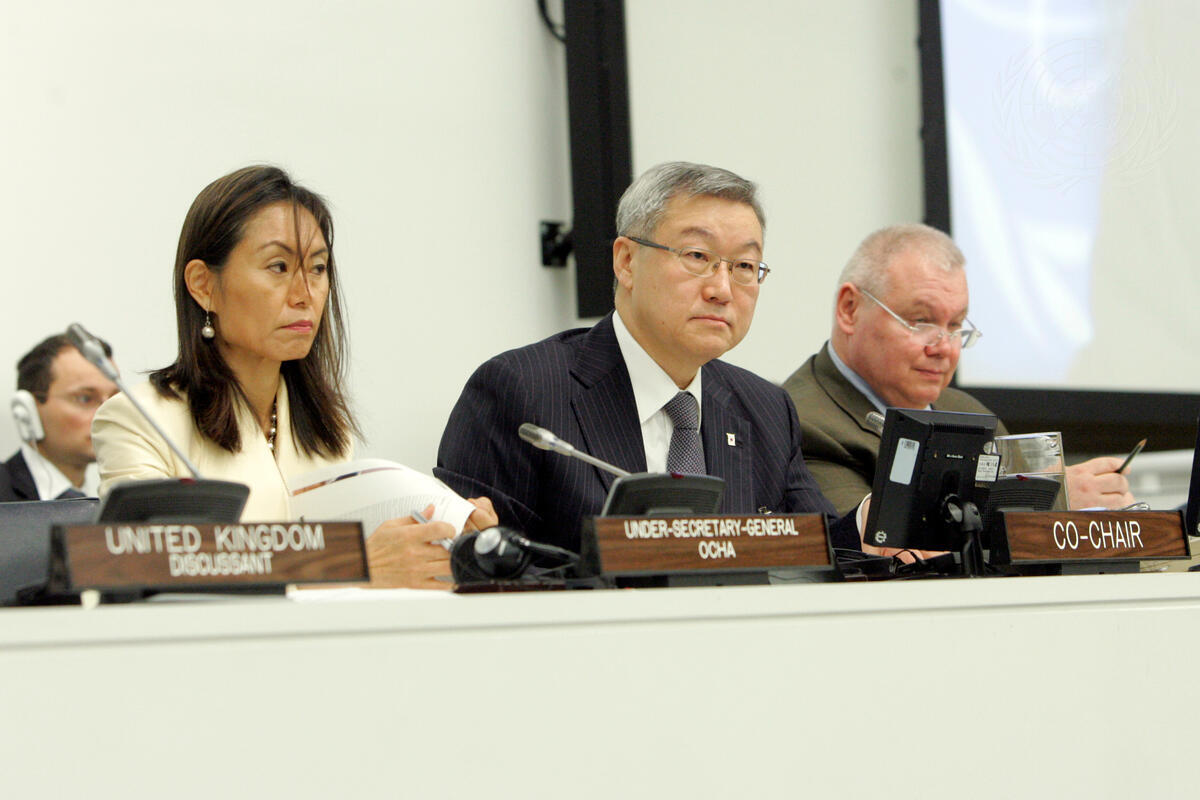 Kim Sung-hwan (centre), Minister for Foreign Affairs of the Republic of Korea, co-chairs one of the two interactive sessions on “Strengthening nuclear safety and nuclear disaster risk preparedness”, held as part of the high-level meeting on nuclear safety and security convened by the Secretary-General. At left is Gwi-Yeop Son, Director of Corporate Programmes Division in the Office for the Coordination of Humanitarian Affairs (OCHA).
