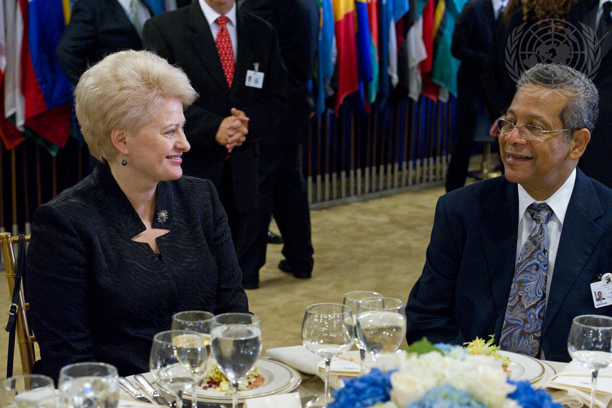 President of Lithuania and Foreign Minister of Jamaica Converse at Luncheon Hosted by Secretary-General