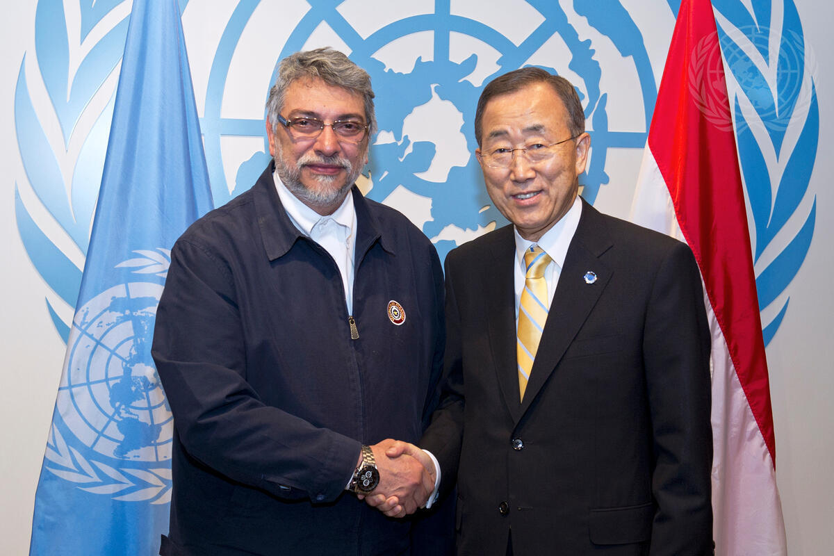 Secretary-General Ban Ki-moon (right) meets with Fernando Lugo Méndez, President of Paraguay.