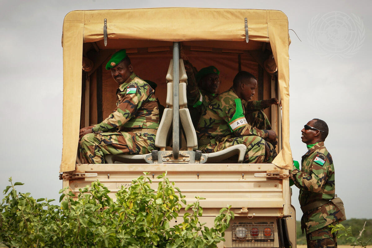 Djiboutian troops serving with the African Union Mission in Somalia (AMISOM) sit in the back of a transport vehicle as additional troops arrive at the airport in Belet Weyne, some 300 kilometres northwest of Mogadishu. The air lift is part of a deployment to begin boosting the just over 300 AMISOM personnel already on the ground to approximately 1,000.