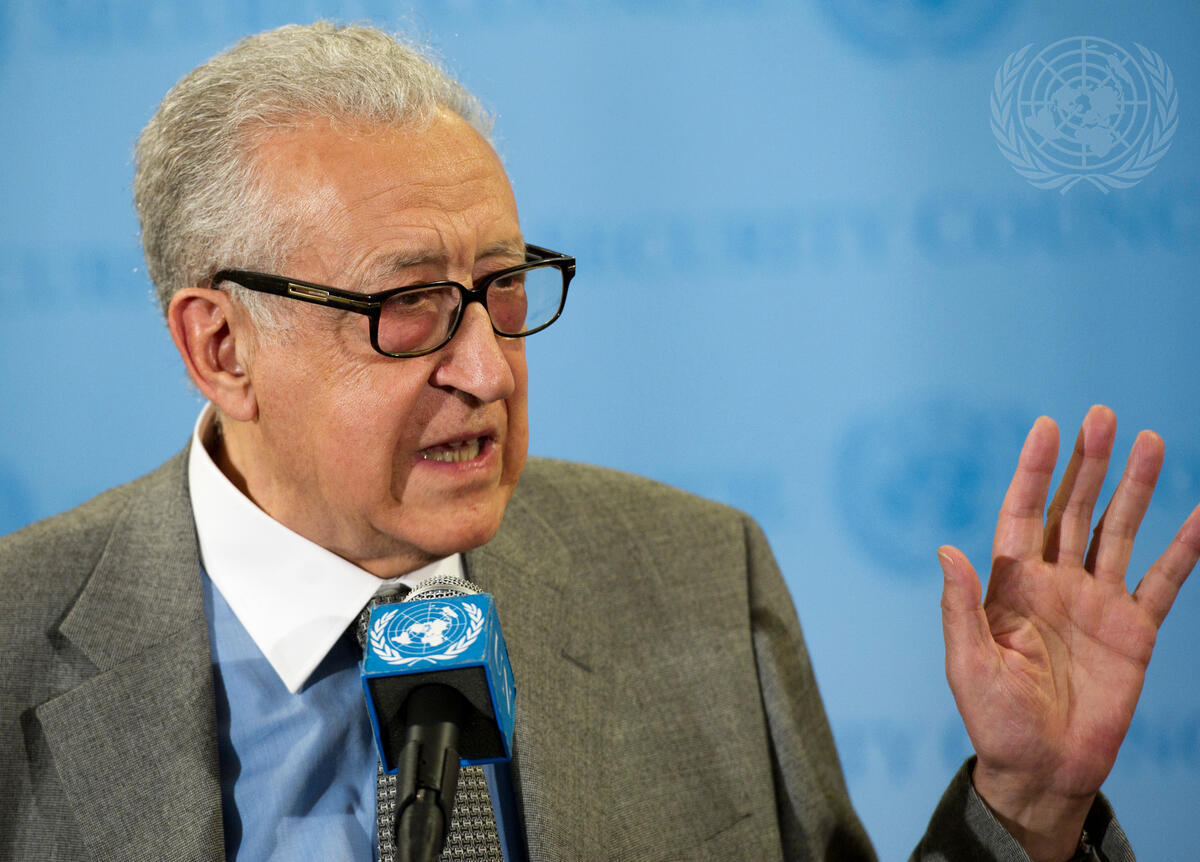 Lakhdar Brahimi, Joint Special Representative of the UN and the League of Arab States for Syria, speaks to correspondents on the latest developments in the country after briefing the Security Council in closed session.
