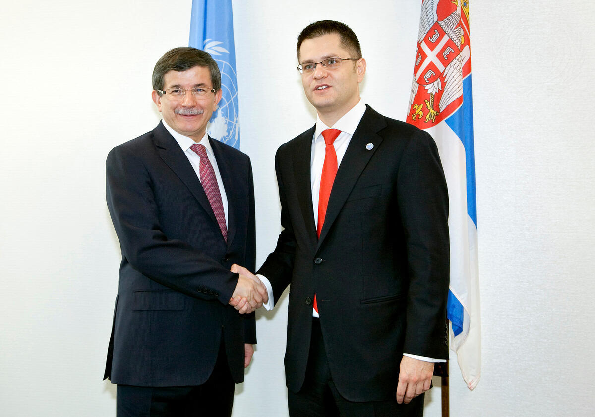 Vuk Jeremic (right), President of sixty-seventh session of the General Assembly, meets with Ahmet Davutoglu, Minister for Foreign Affairs of Turkey.