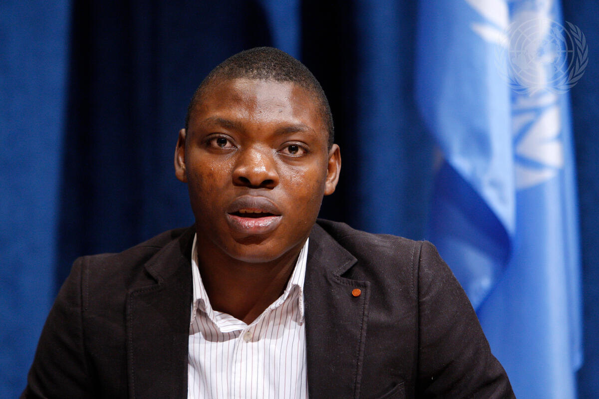 Nigerian activist Michael Ighodaro speaks at a joint press conference ahead of this year’s World AIDS Day on 1 December.