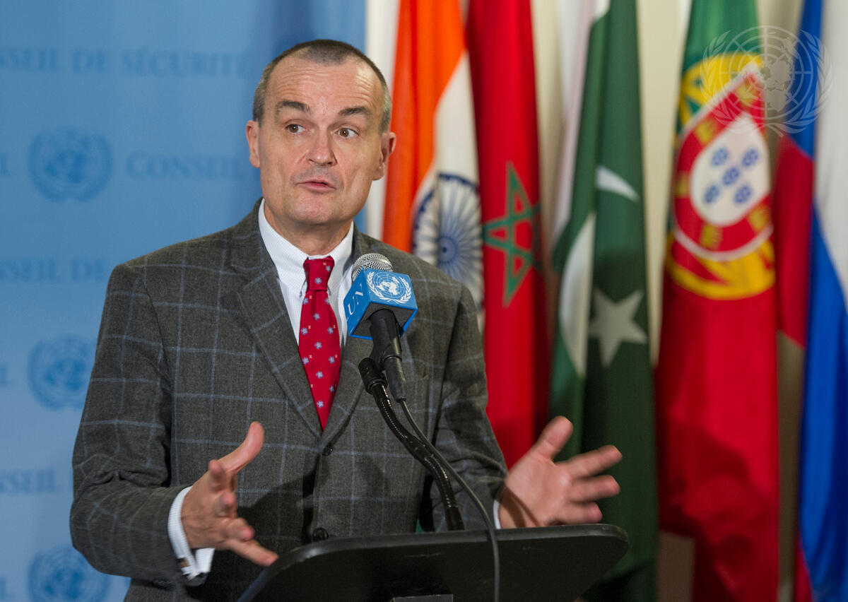 Gérard Araud, Permanent Representative of France to the UN, briefs journalists following the Security Council's closed-door meeting this afternoon on the Democratic Republic of the Congo (DRC). Members discussed the recent intensification of violence in the country’s North Kivu region, notably involving the M23 rebel group.