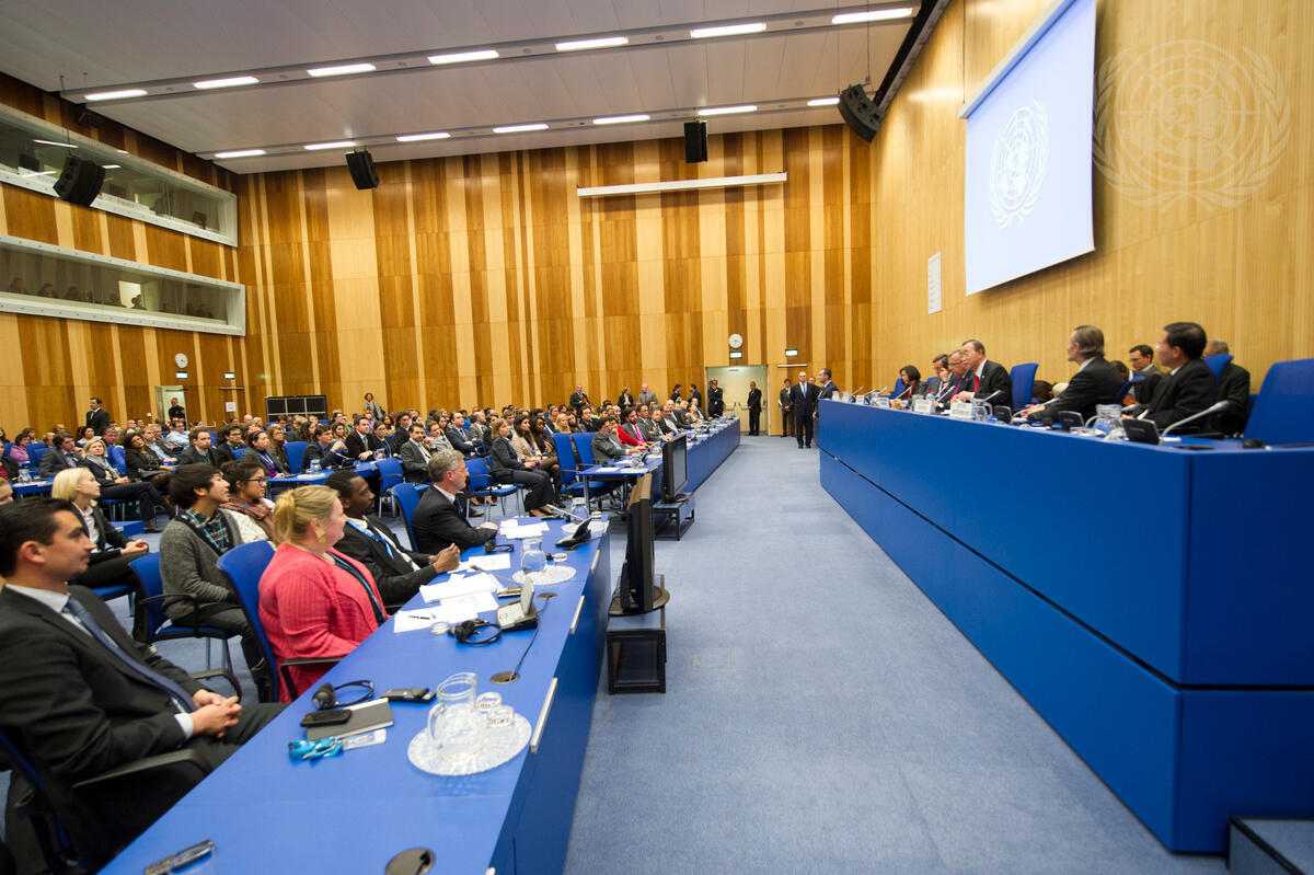 A wide view of Secretary-General Ban Ki-moon’s town hall meeting with staff members of the UN Office in Vienna (UNOV) and Vienna-based UN agencies.