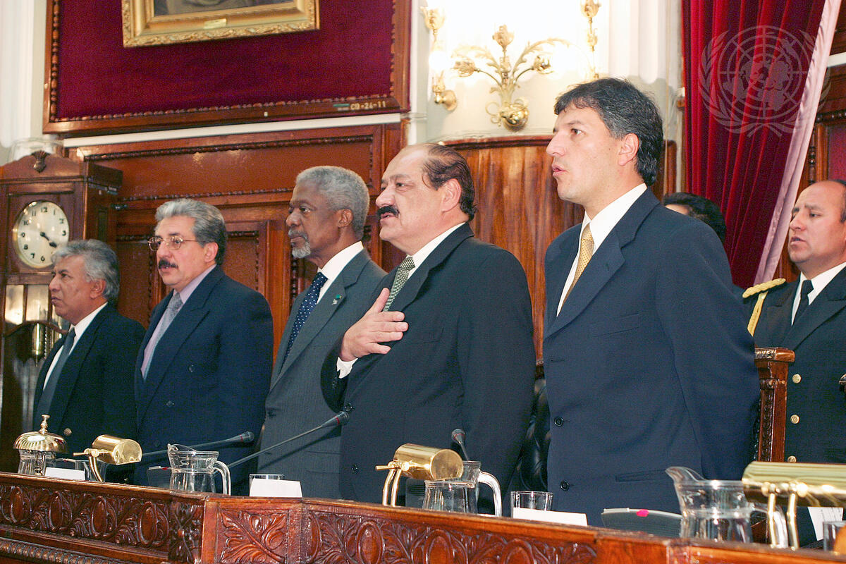 Secretary-General Kofi Annan (centre) attending Bolivia’s National Congress at the Legislative Palace.
