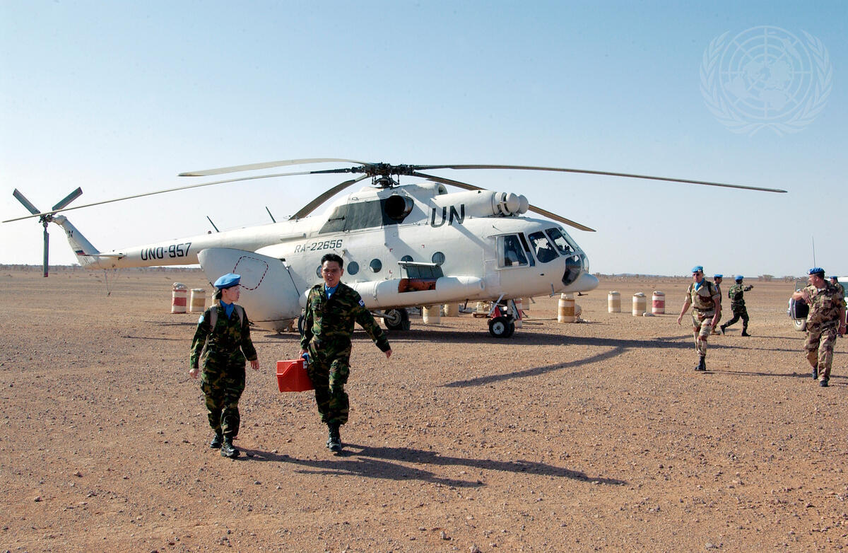 A Korean medical unit with the United Nations Mission for the Referendum in Western Sahara (MINURSO) arrives by helicopter.