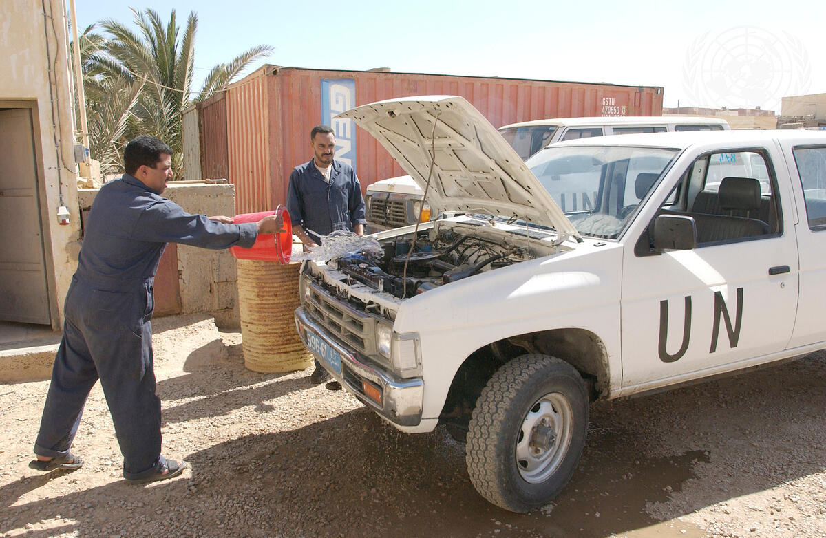 Participants in a UN transport workshop at the United Nations Mission for the Referendum in Western Sahara (MINURSO) headquarters in Laayoune.