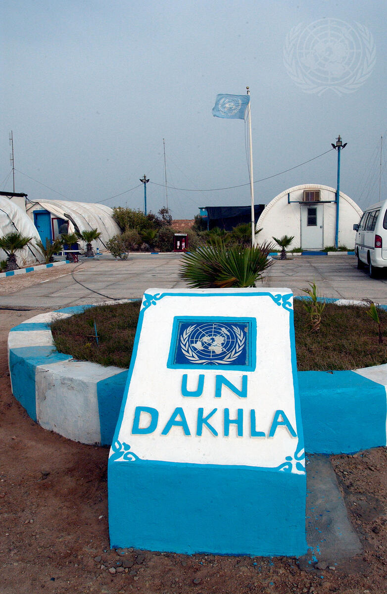 A sign reads ""UN Dahkhla"" in Dakhla City, Algeria.