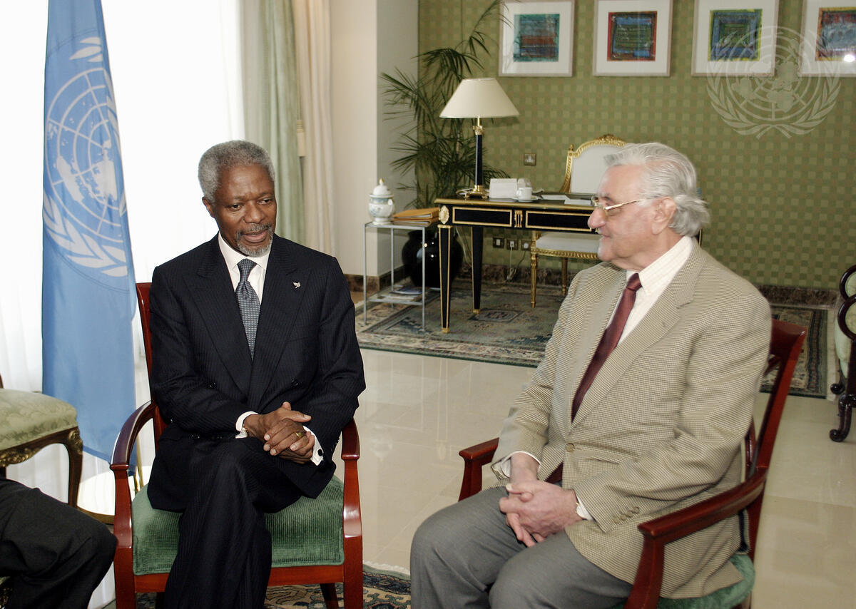 Secretary General Kofi Annan (left) meets with Adnan Pachachi, Former Foreign Minister for Iraq.