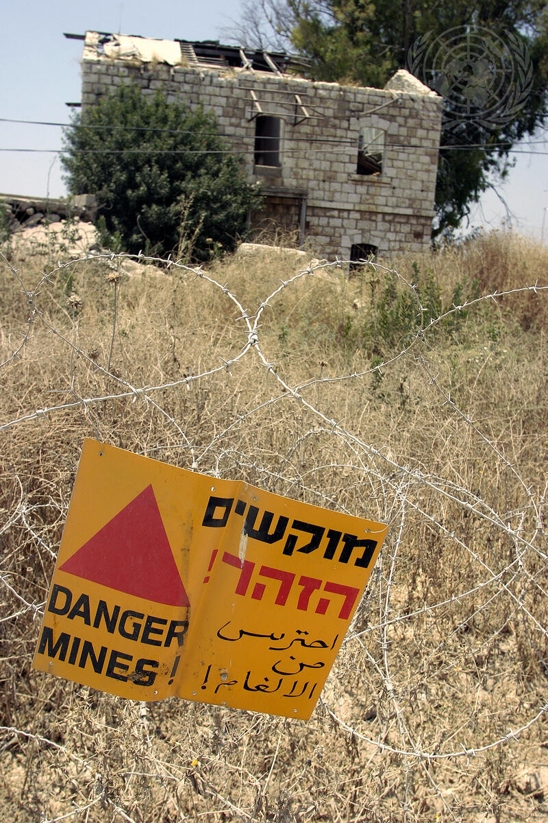 A view of a warning sign for landmines on the West Bank.