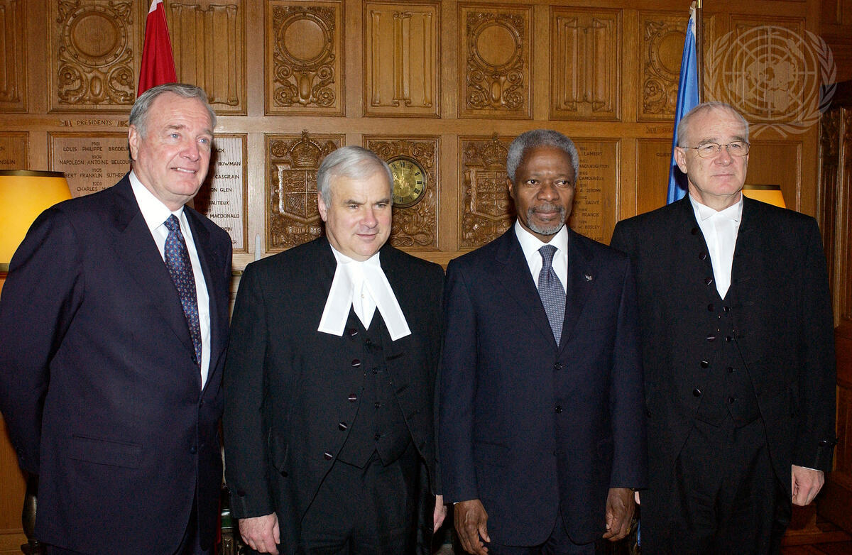Caption Description Left to right: Paul Edgar Philippe Martin, Prime Minister of Canada, Peter Milliken, Speaker of the House of Commons of Canada, Secretary-General Kofi Annan and Daniel Philip Hays, Speaker of the Senate of Canada.