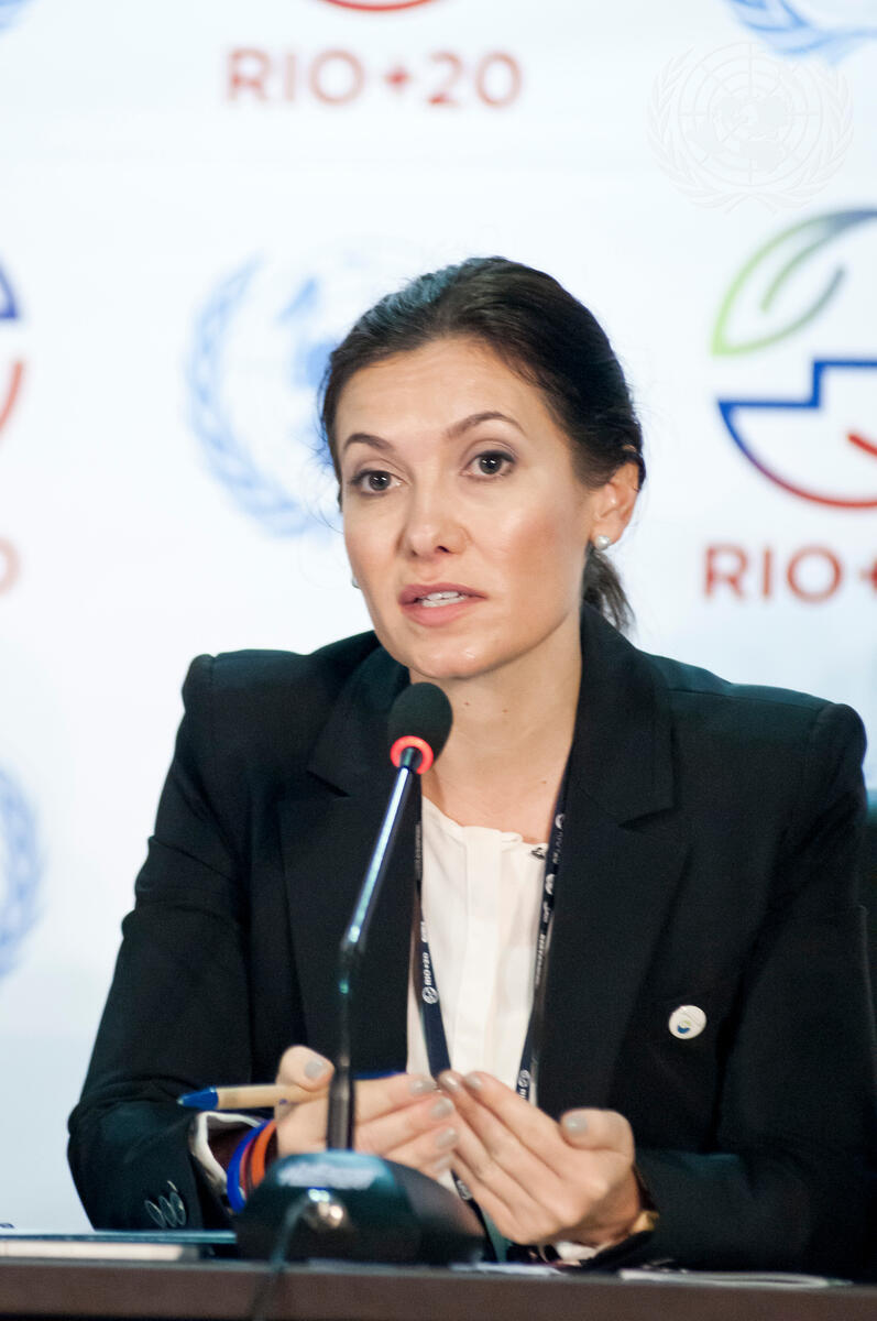 Razan Khalifa Al Mubarak, Secretary-General of the Abu Dhabi Environment Agency, briefs journalists during the Conference.
