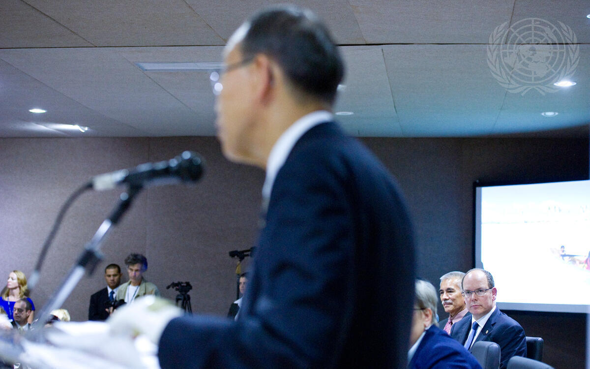 Secretary-General Ban Ki-moon (at lectern) addresses an event on oceans co-organized by the Governments of Kiribati and Monaco with the World Bank, on the sidelines of the Rio+20 Conference on Sustainable Development in Rio de Janeiro, Brazil.