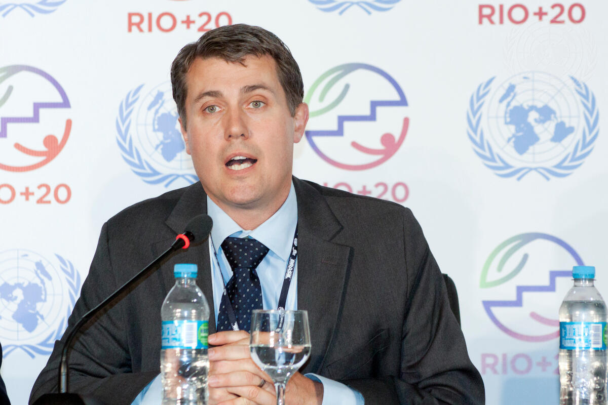 Mark Lee, Executive Director of SustainAbility, speaks at a press conference to launch the UN Environment Programme (UNEP) report, “Sustainable Return on Investment: The Business Case for a Green Economy”, on the sidelines of the Rio+20 UN Conference on Sustainable Development in Rio de Janeiro, Brazil.