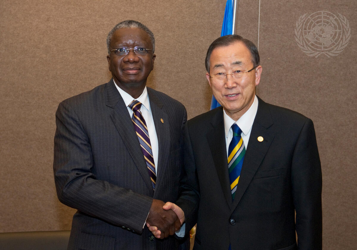 Secretary-General Ban Ki-moon (right) meets with Freundel Stuart, Prime Minister of Barbados, at the Rio+20 UN Conference on Sustainable Development, in Rio de Janeiro, Brazil.