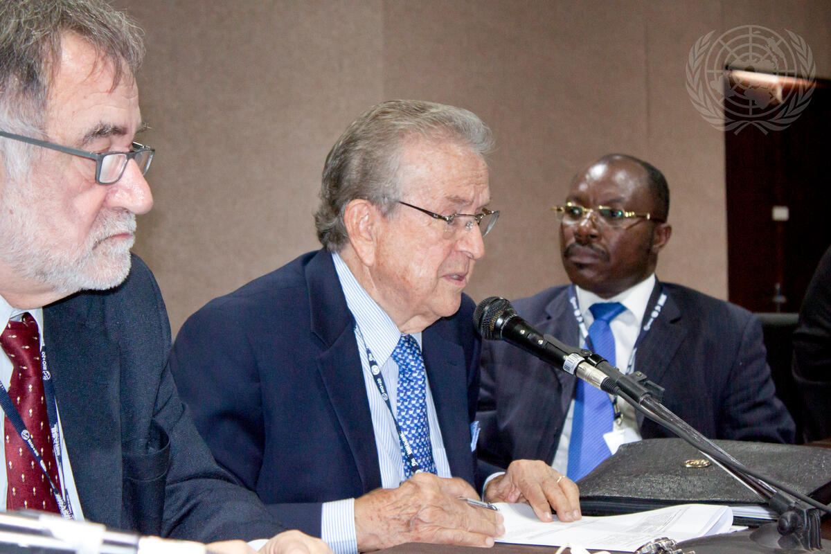 Paulo Alcantara Gomes (centre), President of the Rio de Janeiro's Technology Network (REDETEC) and the State Education Council, and Member of the UNU-IAS Board, speaking at today's discussion. Also pictured are Heitor Gurgulino de Souza (left) and Timothy Afful-Koomson, Environmental Policy Fellow at the UNU Institute for Natural Resources in Africa (UNU-INRA).
