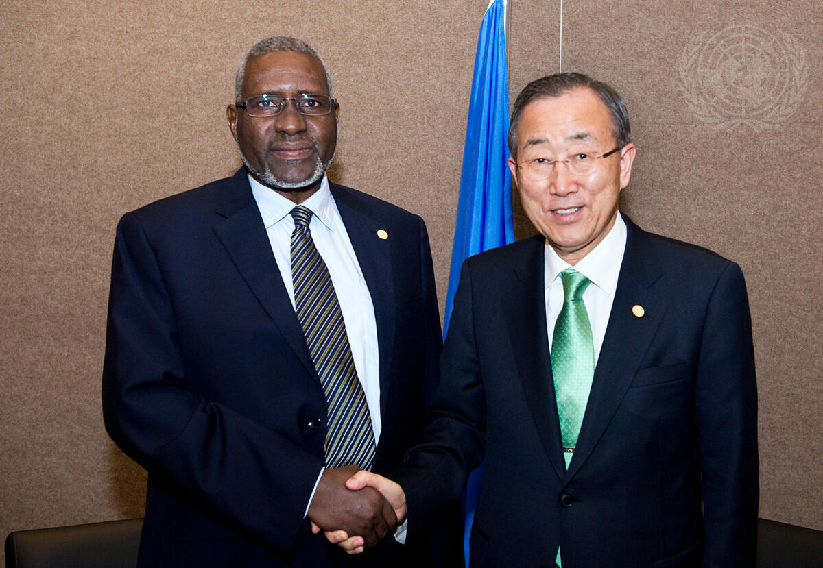 Secretary-General Ban Ki-moon (right) meets with Adam Yusef, Vice-President of Sudan, on the opening day of the UN Rio+20 Conference on Sustainable Development, in Rio de Janeiro, Brazil.