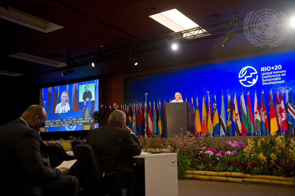 Brittany Trilford (at podium), a seventeen-year-old youth representative from New Zealand, addresses the official opening session of the UN’s Rio+20 Conference on Sustainable Development in Rio de Janeiro, Brazil.