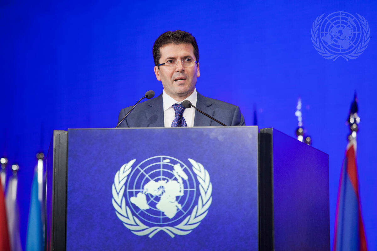 Fatmir Mediu, Minister for Environment, Forests and Water Administration of the Republic of Albania, addresses the plenary session of the UN Rio+20 Conference on Sustainable Development, in Rio de Janeiro, Brazil.
