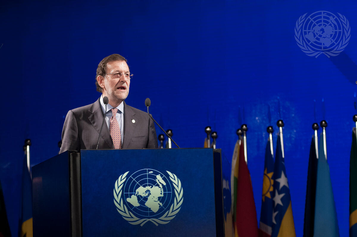 Mariano Rajoy Brey, President of Spain, addresses the plenary session of the UN Rio+20 Conference on Sustainable Development, in Rio de Janeiro, Brazil.