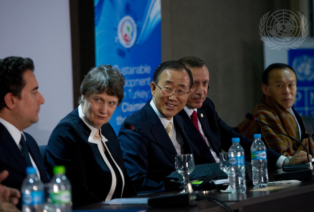 Secretary-General Ban Ki-moon (centre), flanked by UN Development Programme (UNDP) Administrator Helen Clark (second from left), and Turkish President Abdullah Gül, attends a side event co-sponsored by Turkey and UNDP on “Sustainable Development: the Human Dimension”.