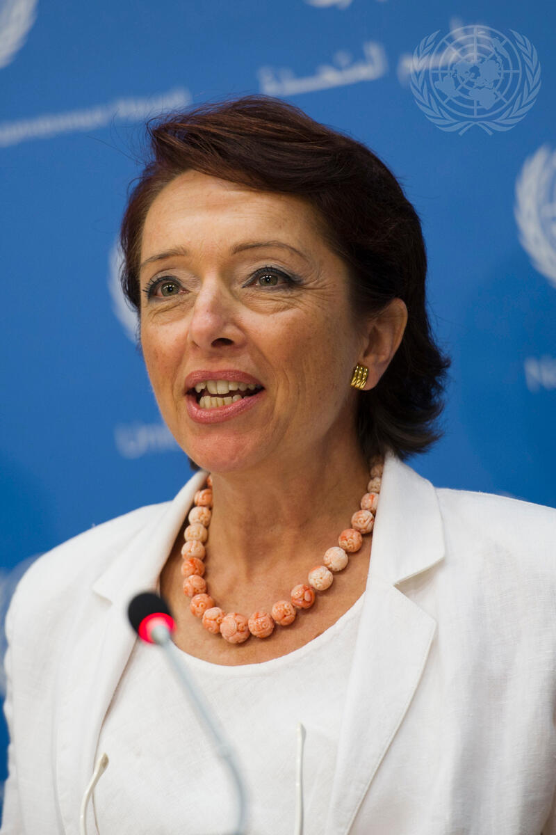Daniela Bas, Director of the UN Division for Social Policy and Development, Department of Economic and Social Affairs, briefs journalists on the sixth session of the Conference of States Parties to the Convention on the Rights of Persons with Disabilities, taking place in New York 17-19 July.